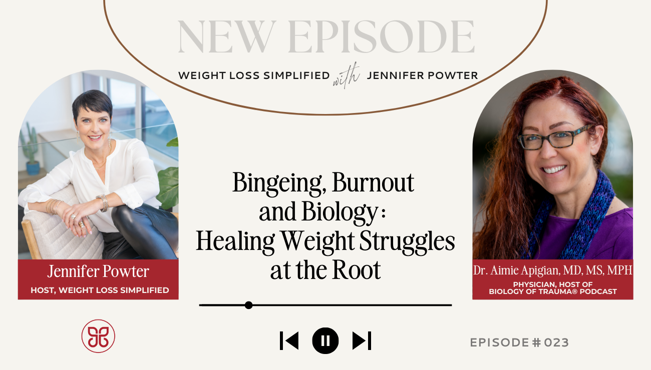 In this episode, trauma expert and physician Dr. Aimie Apigian explains how unresolved trauma gets stored in the body and why it shows up as exhaustion, binge eating, burnout, and weight struggles.